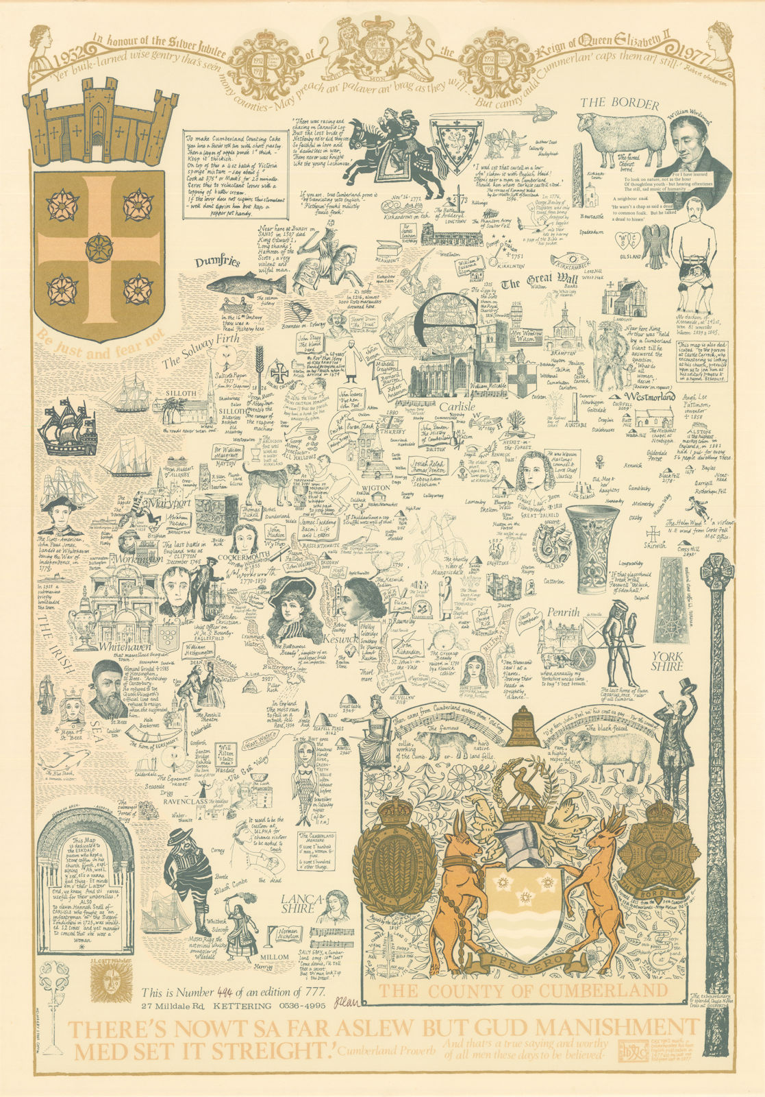 Only one design of a map of Cumberland is known, but it seems to have been printed in two editions, both of 777 copies. It is also possible that the same design was printed in two batches with different colours but I suspect, to keep down costs, Carr would have the whole edition printed at once.