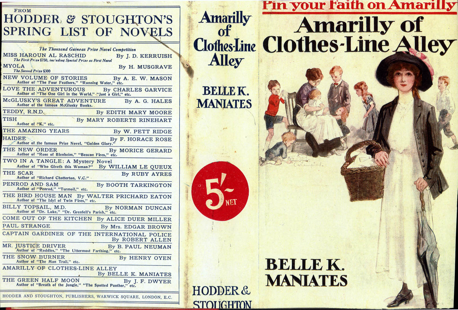 Belle Kanaris Maniates (1861-1931) was a Greek-American writer of romantic novels in the early 1900s that explored the clashes between the social classes. This novel was first published in the USA by Little, Brown and Company in 1915. The novel was made into a silent film starring Mary Pickford in 1918. Several of her novels including this title are available on line.