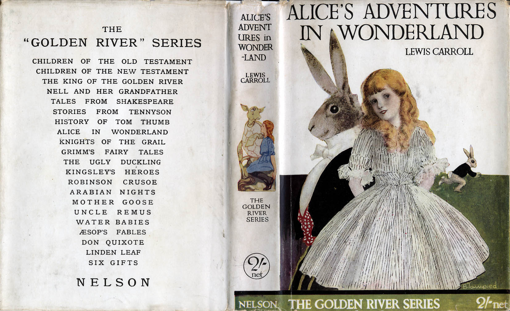Blampied's cover design was used on the jacket or cover of at least two later editions of Alice in Wonderland published by Thomas Nelson and Sons.