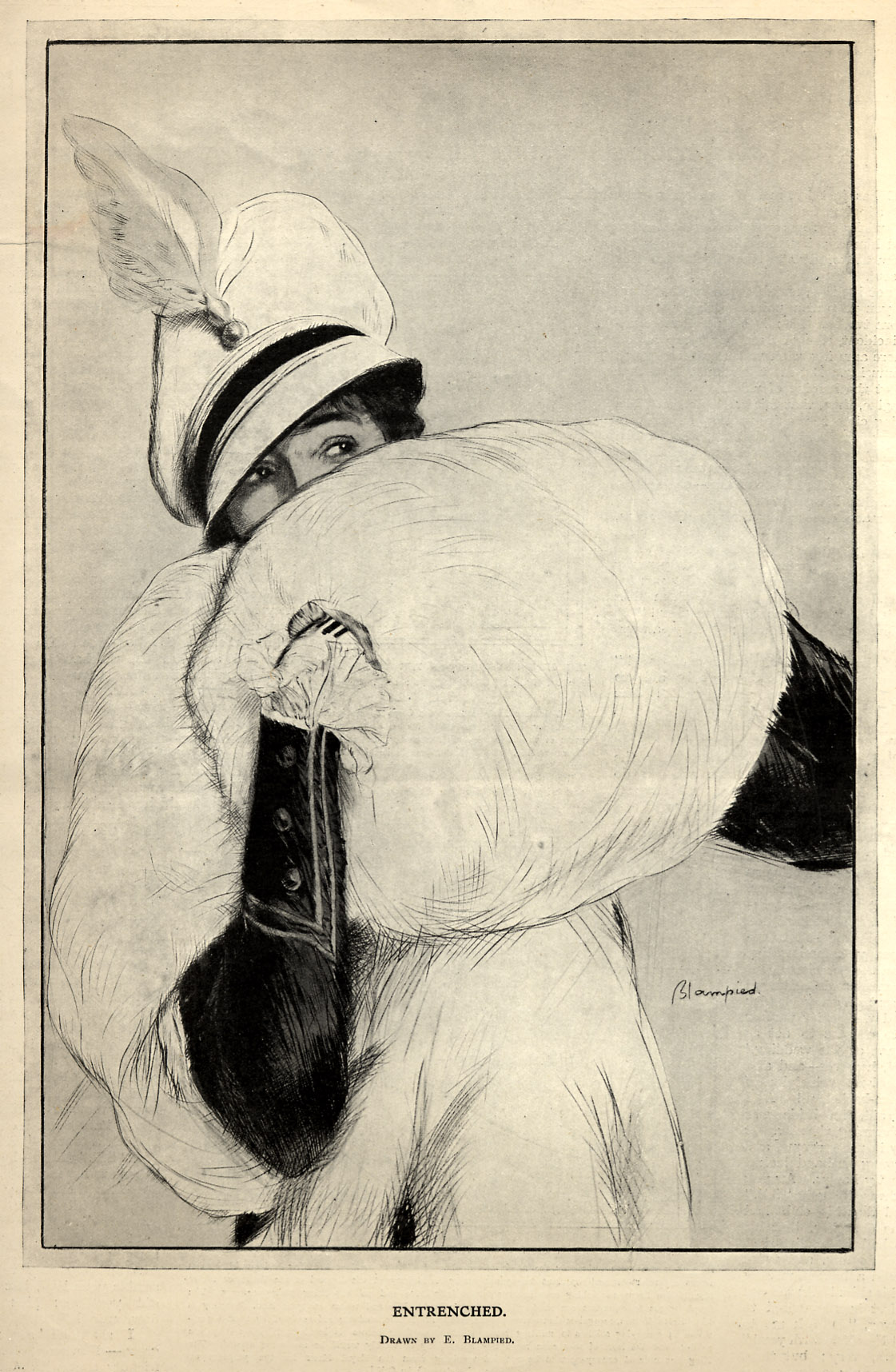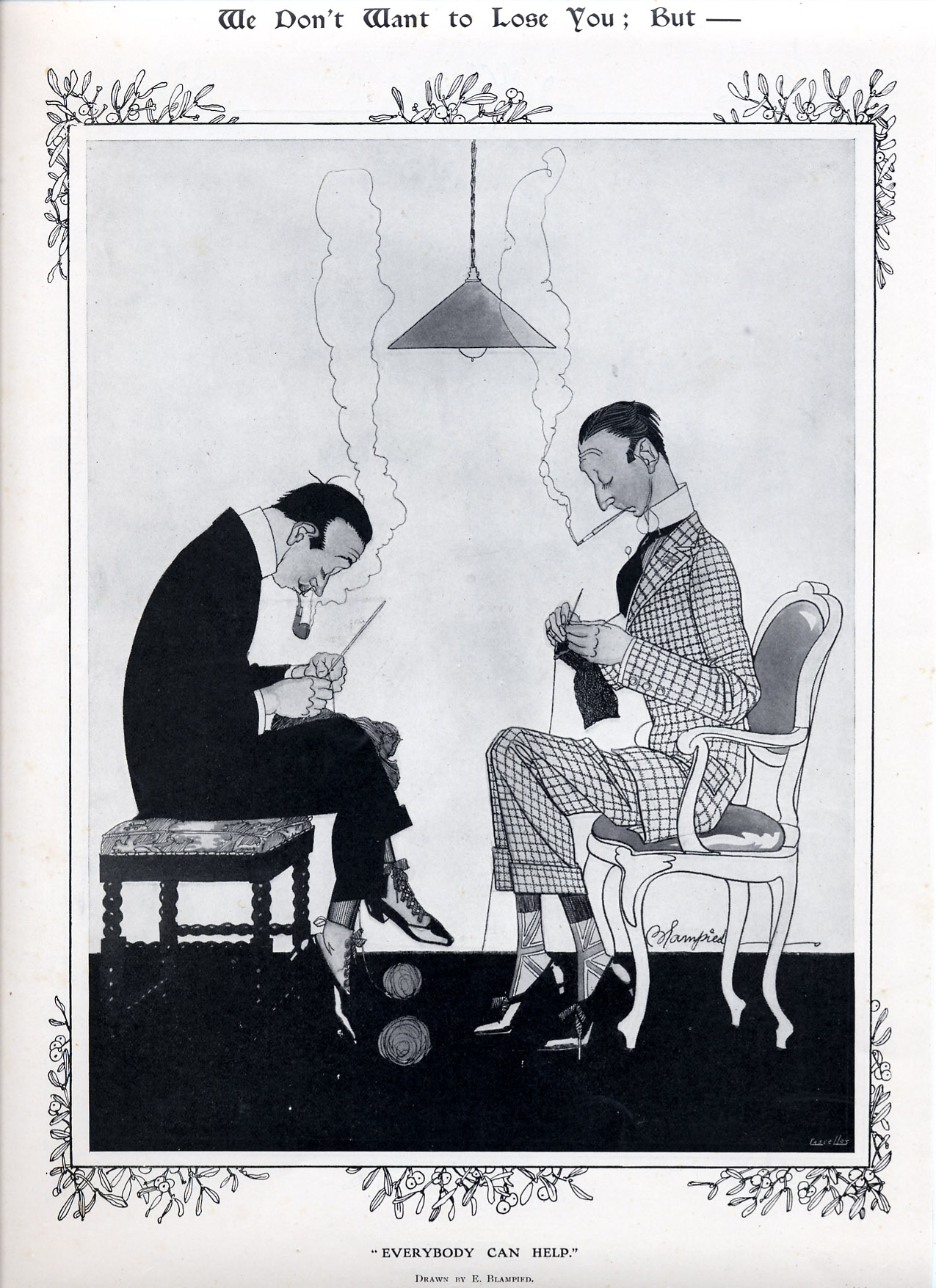 The Sketch did not cover what was happening at the Western Front, but the magazine was much more sombre during the Great War, if only by printing most drawings in monochrome even if they had been painted by the artist in colours. The market for Blampied's type of drawing, of pretty young women, also shrank considerably as many titles were devoted to the war and published artist's drawings of what they imagined was happening at the Western front. Photographers and artists were not allowed to visit the front, so the warfare they depicted was unrealistic, especially as it was in monochrome. But The Sketch continued to buy Blampied's drawings, and he was able to illustrate stories for Pearson's Magazine and other monthly story magazines, so his living was quite good.