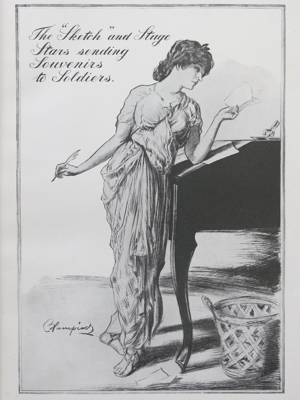 Issue: 7-Apr-1915, vol. 90, no. 1158, The Sketch Supplement, p 1-12. Type: MO1. Price: 6d. Author: none. Title: "The Sketch Supplement". The "Sketch" and Stage Stars send Souvenirs to Soldiers.