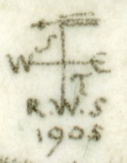 The design is signed by his monogram: a weathervane pointing west with the letters of his name and the initials R.W.S. underneath.