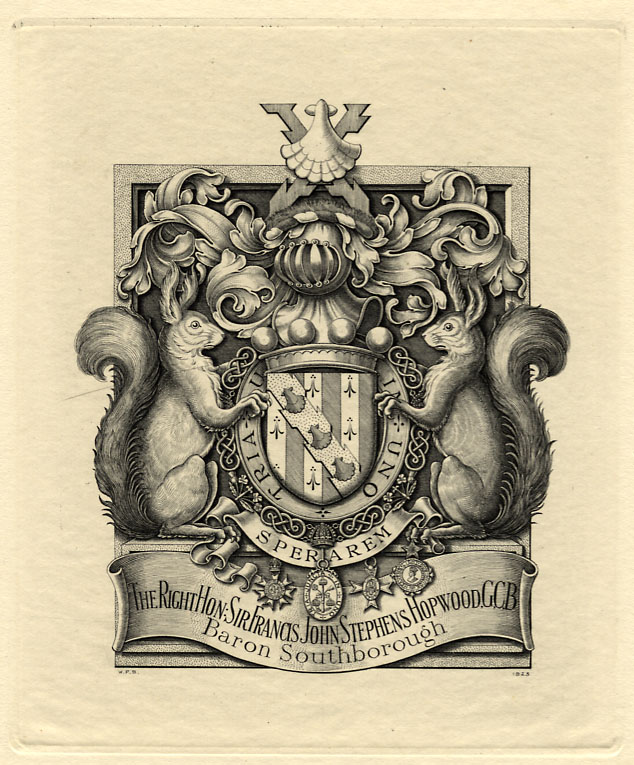 Francis Hopwood was a British civil servant and the 1st Baron Southborough. The supporters are red squirrels, which is sweet. They are symbols of thrift and caution because they store nuts for winter. Squirrels also hop around a wood, so it may be a rebus.