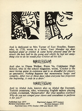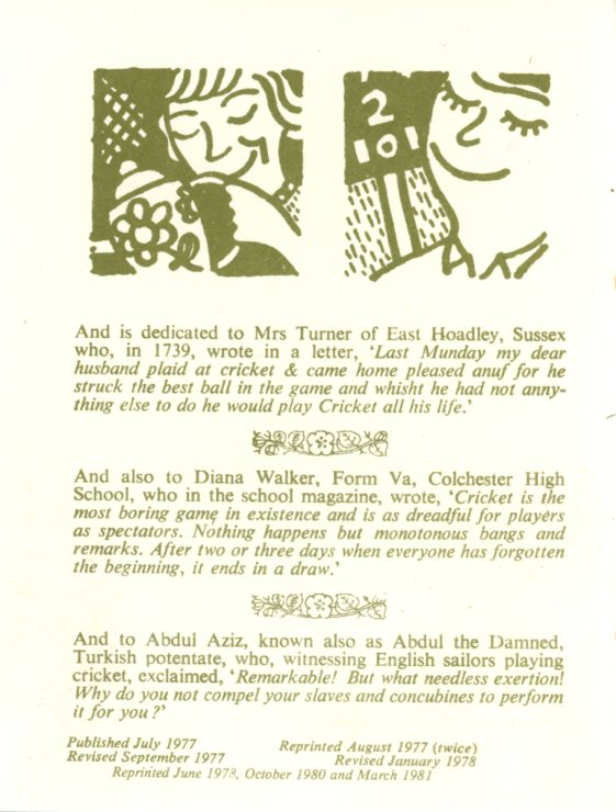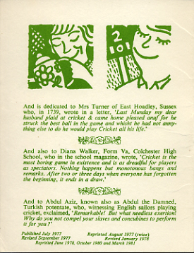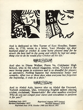 The cricket dictionary – for high literary reasons I falsified one detail on the front cover. Quite undetectable! Then a Rotherham man wrote, "My father, Irving Washington played in the game on your front cover and. . ." Well I won't go on, it’s too painful. But it only goes to show!
