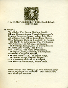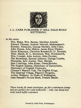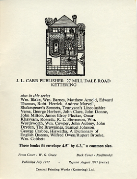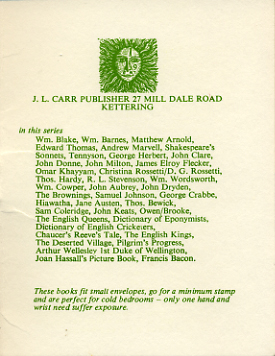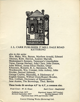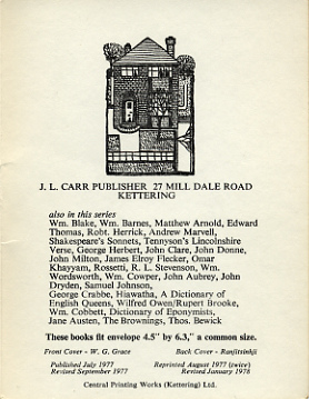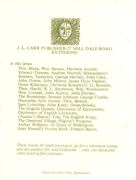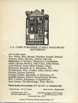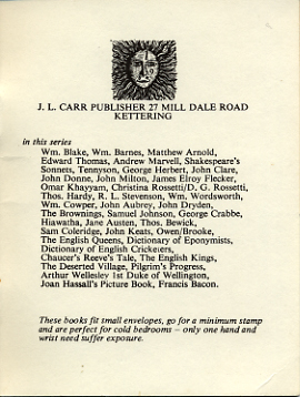 Publisher: J.L. Carr Publisher, 27 Mill Dale Road, Kettering