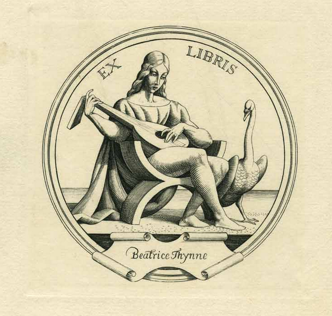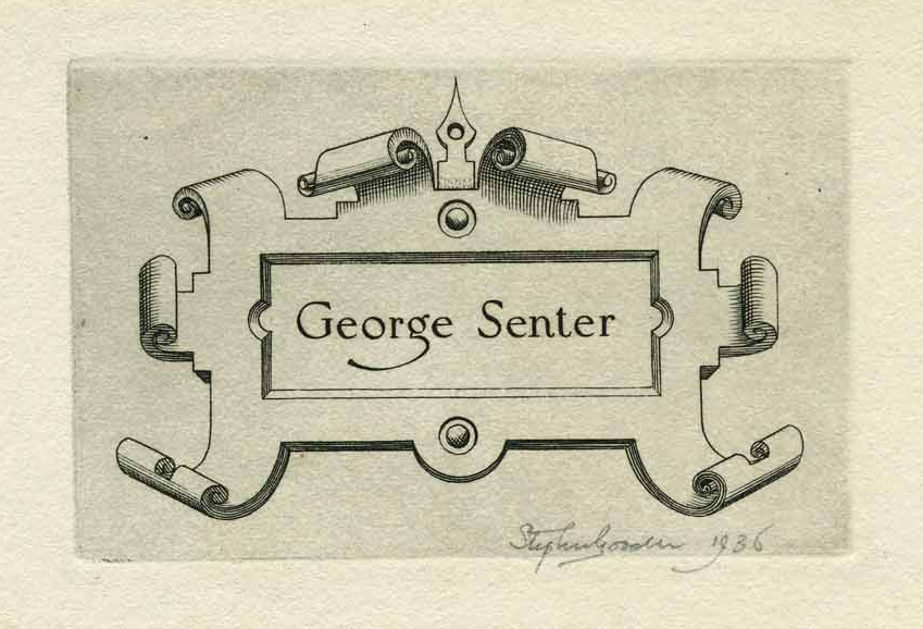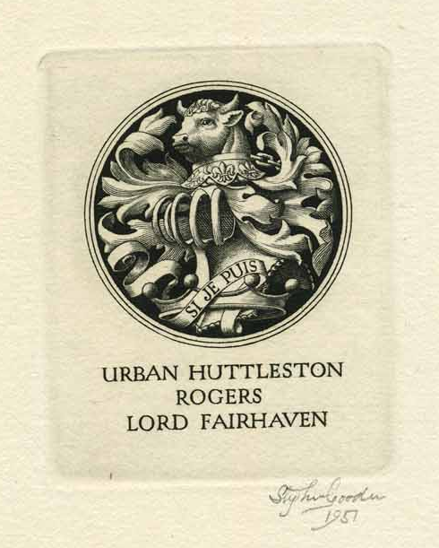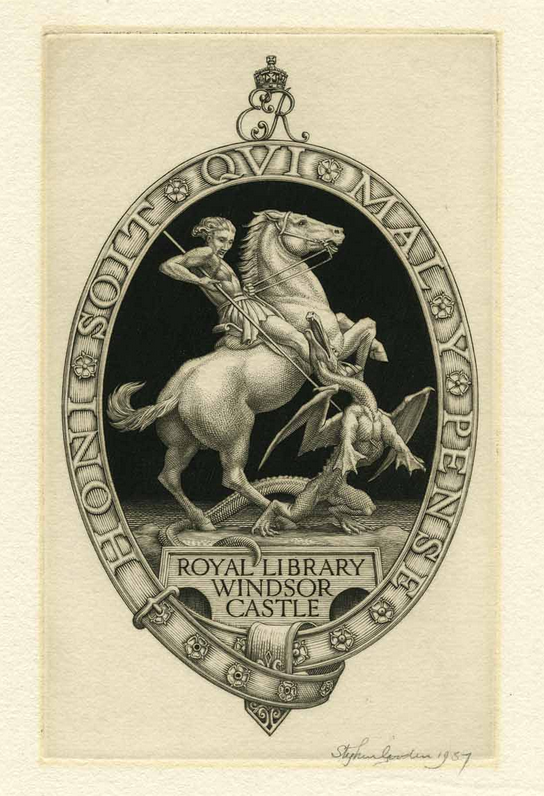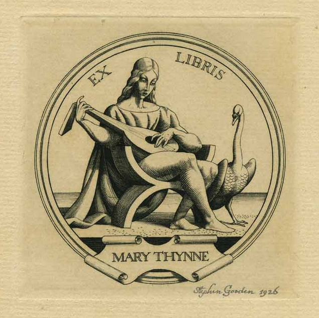 A bookplate was designed by Stephen Gooden for Robert Crichton-Stuart. It was engraved by Henry Wilkinson (1921-2011) after Gooden's death.